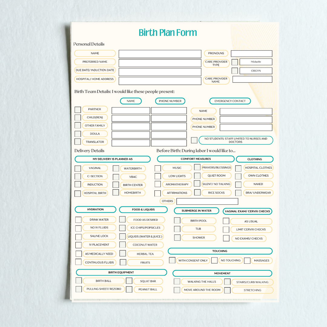 * Email is required to take you to a downloadable Birth Plan Form